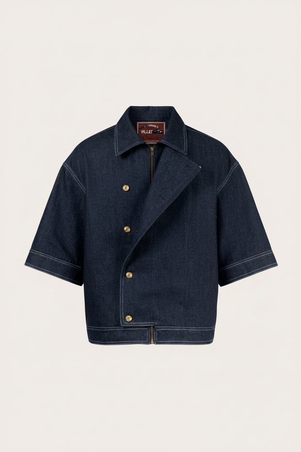La Jacket Crossover Flap est une version améliorée de la classique veste en Denim inspirée des vêtements des années 90's / 2000. Doté d'un rabat recouvrant le zip YKK, de 5 boutons-pression sur le devant de la veste, le vêtement est composé uniquement de coton, 14oz, 475gr/m2 l'un des Denims les plus brut. La silhouette est carrée, exagérées pour garder un coté ancien a la veste ajoutant à l'aspect brut au design.