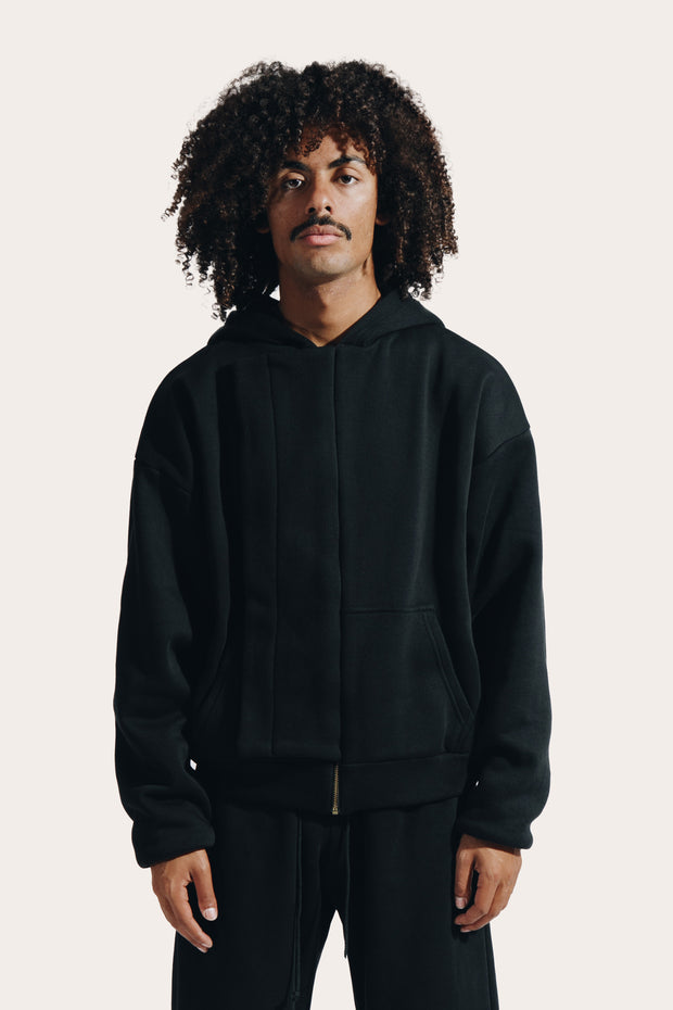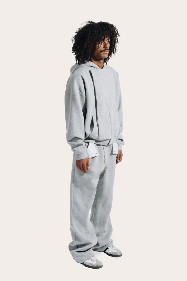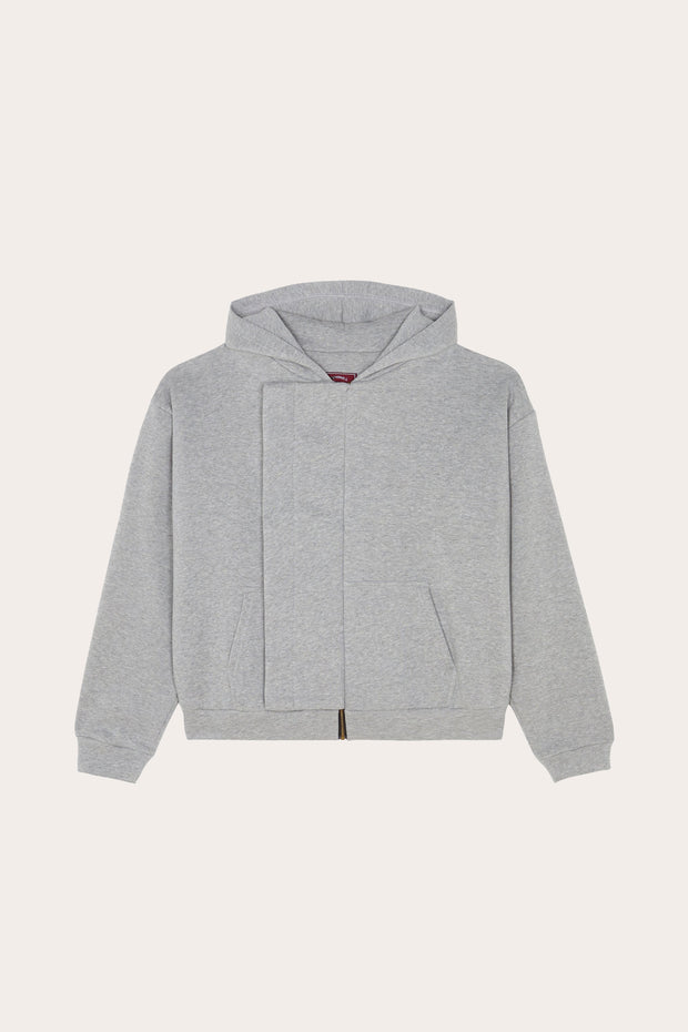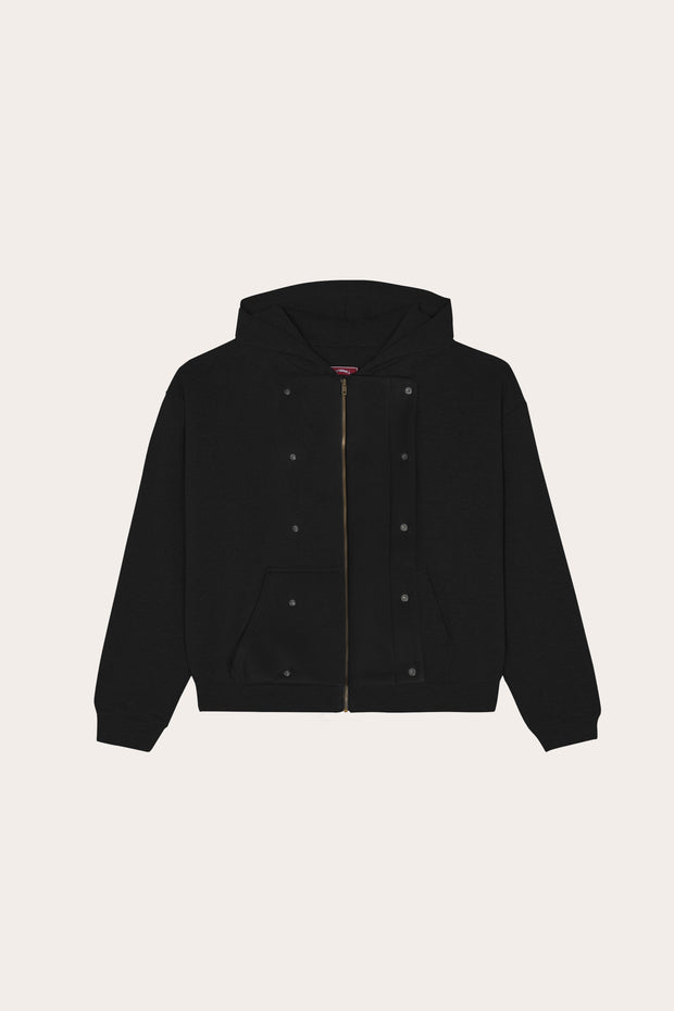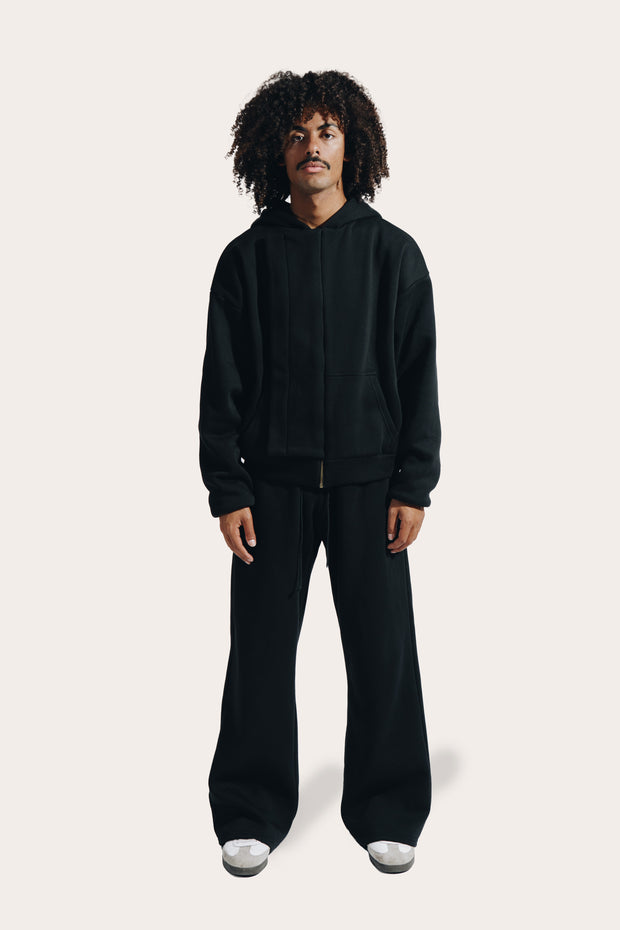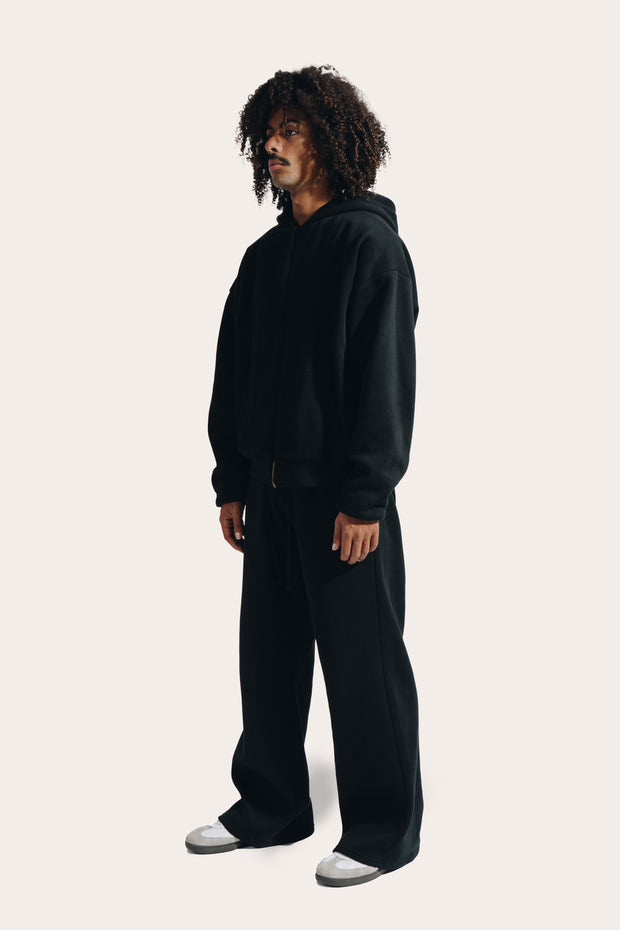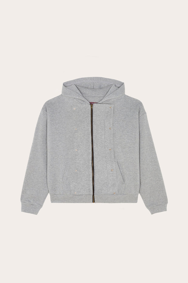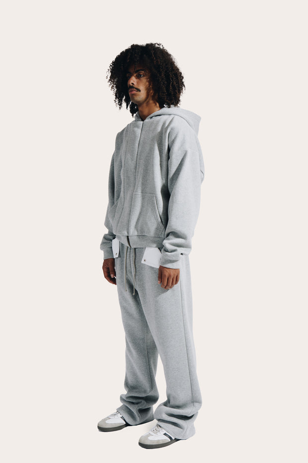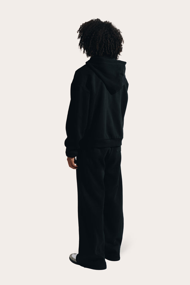 Confectionnée dans un coton épais mélangé à du polyester brossé, la pièce allie douceur, structure et fluidité. Sa coupe droite inspirée des ensembles vintage, associée à un zip YKK et à des finitions côtelées robustes, renforce son allure sportive et fonctionnelle.